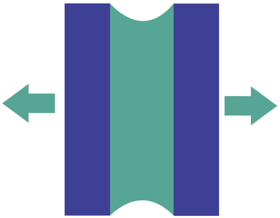 Tensile: Forces perpendicular to the bond plane. Stress is distributed over the entire bond area. The entire adhesive contributes to the bond strength.